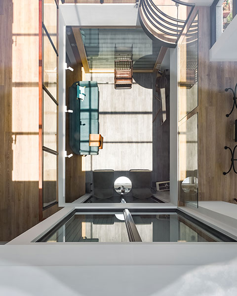 在小巷弄裡擁有一間低調的生活空間,既獨特又私密,又不失現代便利性。居住者可以在室內,透過挑高的天窗,白天欣賞白雲和陽光,在夜晚觀看月亮和星星,與天地完美和諧地生活,此小宇宙帶來極大的和平與舒適。